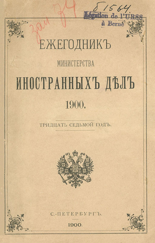 «Ежегодник Министерства иностранных дел». 1900 г. Типография Тренке и Фюсно, Санкт-Петербург