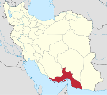 Провинция (остан) Хормозган, включающая 12 областей (шахрестанов). Область Сирик с одноименным главным городом в правой части карты, закрашена зелёным цветом.