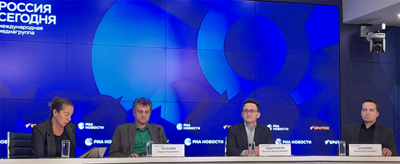 На круглом столе, посвященном итогам парламентских выборов в Чехии. Слева направо: О.Буряк (модератор), В.Трухачёв, М.Ведерников, М.Анхимюк. Фото А.Торина.