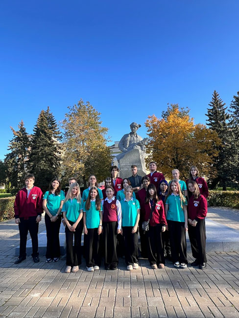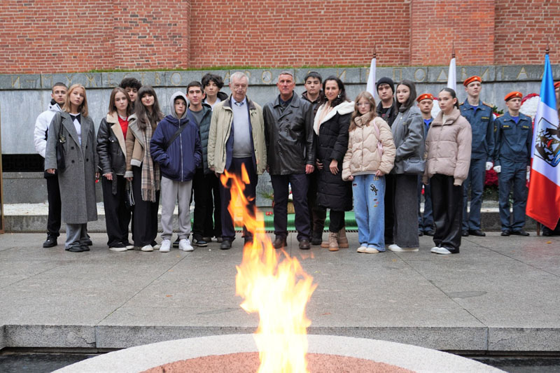 11 октября юные дипломаты приняли участие в возложении цветов к мемориалу «Огонь Вечной Славы». Вместе с ребятами память солдат почтил Глава города Великого Новгорода А.Р. Розбаум. Он рассказал о подвиге Великого Новгорода в годы войны, пригласил ребят жить и учиться в современном и развивающемся Новгороде и пожелал всем удачи и достижения поставленных целей. Юные дипломаты М. Евдокимов и А. Русаков из Лицея дипломатии – школы «Гармония» (г. Ижевск) прочитали отрывок из произведения В. Высоцкого «Песня летчика».