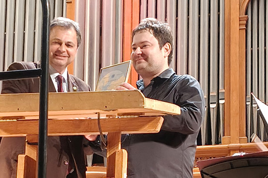 Директор Информационного Центра ООН в Москве Владимир Кузнецов и скрипач-виртуоз Иван Почекин