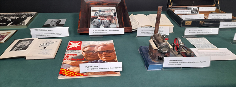 В рамках конференции прошла также уникальная выставка фотографий, автографов и артефактов, рассказывающих историю взаимоотношений Леонида Брежнева и Вилли Брандта из частного архива журналиста-германиста, обозревателя газет «Известия» и «Советская культура» Валерия Леднева. Именно ему и сотруднику КГБ СССР Вячеславу Кеворкову с санкции Леонида Брежнева и Юрия Андропова предстояло установить неформальный контакт с Брандтом через его советника Эгона Бара. Этого политика Леднев хорошо знал по временам, когда работал в должности редактора международного отдела газеты «Советская культура» в ФРГ.