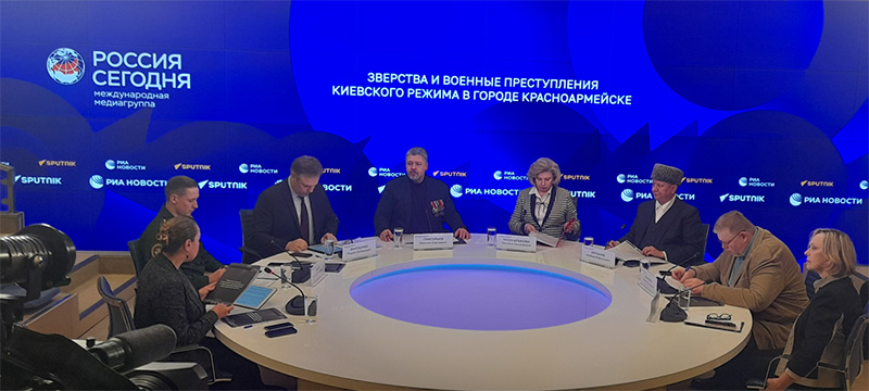 В Москве состоялась пресс-конференция, в рамках которой общественности и представителям средств массовой информации был представлен доклад Международного общественного трибунала по преступлениям украинских неонацистов «Зверства и военные преступления киевского режима в городе Красноармейске (Покровске)». Город, входящий в состав Донецкой народной республики и являющийся крупным центром угольной промышленности Донбасса, был освобождён от украинских вооружённых формирований 1 декабря 2025 года.