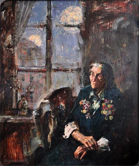 В том же ряду – портрет ветерана Великой Отечественной – Михаила Воронова, деда художницы Екатерины Вороновой. Сосредоточенность, решимость, воля, сила – всё в этом лике воина дорого самой внучке, и это передается зрителю: такие защитники выстояли в самой страшной войне XX века. Портрет работы Людмилы Бирюковой ветерана-блокадницы, которая в кои веки надела китель, обвисший под тяжестью орденов, не оставляет равнодушным. Весь облик героини, как летопись перенесший войну и тяготы послевоенной жизни женщины; мужественно сомкнуты губы, сцеплены натруженные руки, но взгляд открыт и прям, - сколько в нём страдания, запрятанного глубоко!